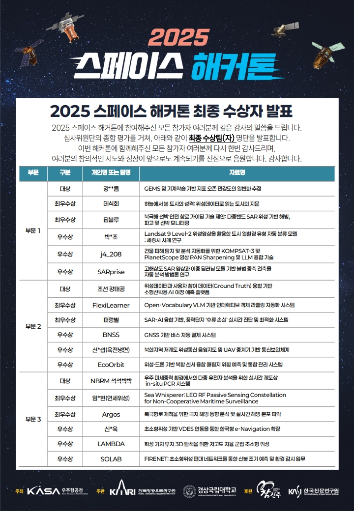 2025 스페이스 해커톤 '최종 수상자' 발표